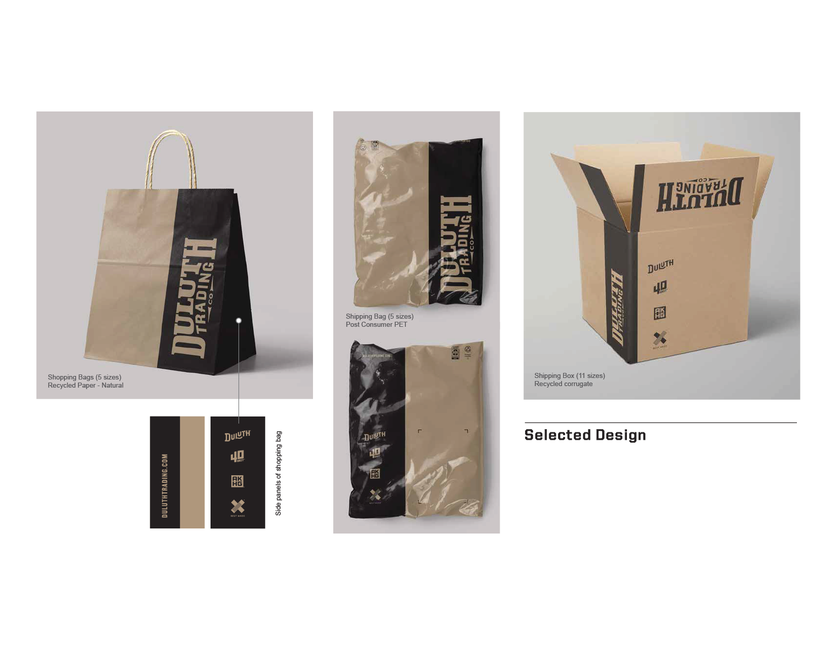 The redesign of the shipping packaging represented a notable departure from the previous branding, which had been utilized for 12 years. The objective of this fresh design was to cultivate a more inclusive experience for Duluth Trading customers by featuring the family of brands instead of solely highlighting men's national ad artwork. To guarantee a successful rollout across all shipping facilities and nationwide retail stores, I assumed the lead in conducting diverse focus groups. These sessions addressed critical elements such as sustainability, conformity to distribution center standards, durability testing, and inventory management, all of which played a significant role in the overall success of the project.
